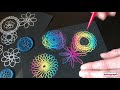 Create amazing Spirograph art with this scratch design set! Use the stylus tool with glitter wheel and gears to scratch designs on the special sparkle or rainbow scratch paper. You can also use your own pens to draw Spirograph designs on regular paper!
