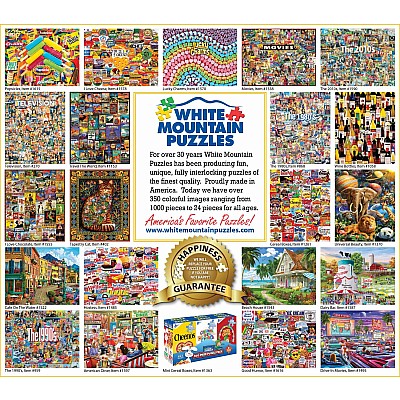 1746 Adventures at the Lake. The sun is setting on another beautiful fall day at the lake. Dad is out on the boat attempting to catch dinner and the son in on the dock trying to help. Loons swim close to shore while dogs play in the grass and a bald eagle soars overhead. A bonfire is waiting for the family to relax and converse over smores. Artist David Maclean brings the magic of fall on the lake to you in this 1000 piece jigsaw puzzle. Finished size 24" x 30".