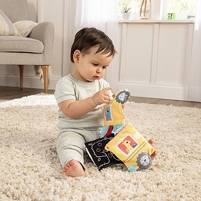Send their senses to school! The Lamaze Accordion Bus is a fabric sensory book featuring two sides of fun. Unfold it and discover a high-contrast side, great for younger babies, with black-and-white illustrations depicting lovely schoolyard scenes designed to stimulate visual development.