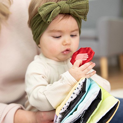 - Bonding Moments: Fabric sensory book unfolds to a variety of fun scenes and colors, promoting close, nurturing interactions between baby and caregiver and early imaginative play
