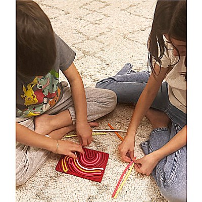 Each set includes a travel-friendly board and a colorful set of bendy silicone noodles that kids can loop, weave, and sculpt into their own designs. Available in multiple fun colors like Lilac, Midnight Sky, and Ruby.