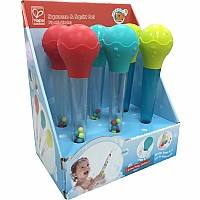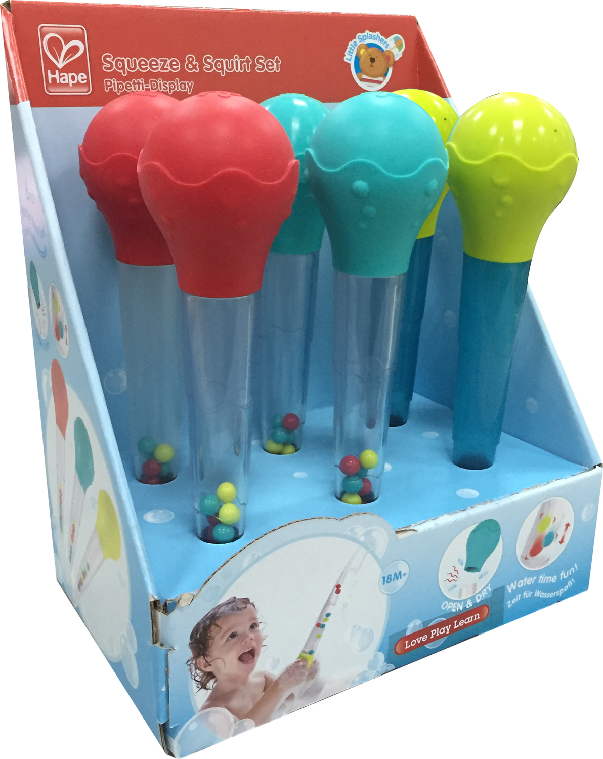 Shake the dropper in or out of the bath to make the colored beads inside rattle and dance. At bath time, place the end of the dropper below the water surface and squeeze and release the bulb. Water gushes in and makes the beads rush about. Move the dropper above the water and squeeze the bulb again to create a powerful water spout. Great for playing with friends. The silicone bulb can be removed for easy cleaning.