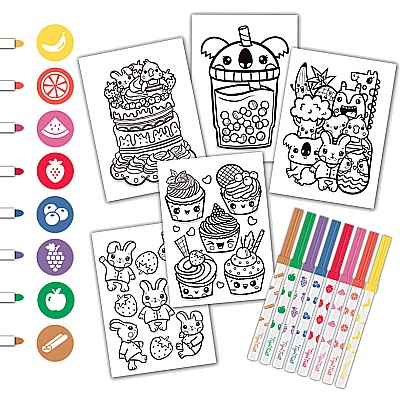 Includes 8 scented, colored markers and 36 illustrated coloring pages
