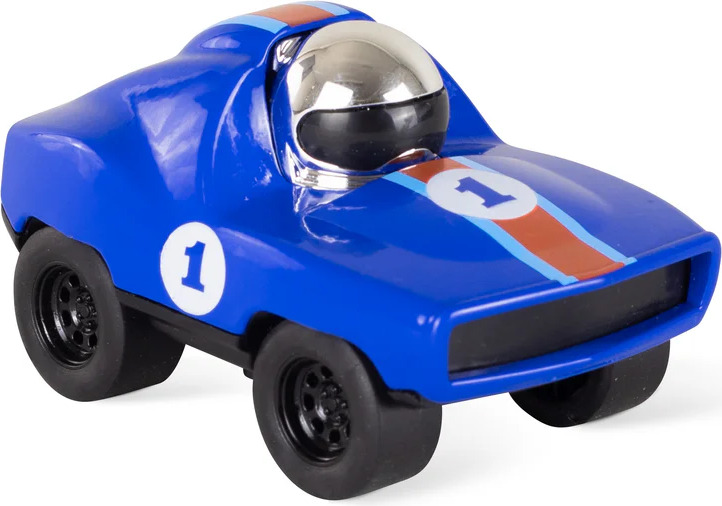 Hey, presto! This turbo-speed, battery-free retro mini racing car is ready to roll! Kids will have a hoot racing these nimble little diecast Racers, activating the racing mechanism with a simple push-down, and they’re off! In three fun and collectable designs.