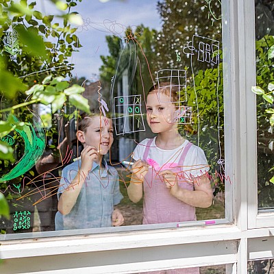Let your imagination run wild, using these brightly colored, fine tip window markers designed for coloring, drawing and writing messages on glass. And if you make a mistake simply wipe off and start again, providing hours of creative fun. Markers are kid safe, odour free and easily dry erase off glass and mirrors (with a tissue or cloth).