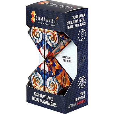 Bigger & Better Shashibo Fun! Create bigger structures faster, using fewer cubes! Shashibo Squared is triple the fun - three puzzle designs in one! Powered by 72 rare earth magnets, it transforms into 210 designs! Flip, fold, and twist your way to discovering stunning designs that will keep you captivated for hours. Fully compatible with Shashibo.