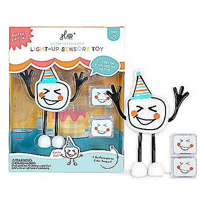 Insert your Glo Pals Light-Up Cube into the back of each Pal, drop it in the water, and watch it light up! Featuring bendable arms and colorful personalities, each Pal proudly illustrates the uniqueness in every child! Party Pal comes with two multicolored Glo Pals Light-Up Cubes included in the box!