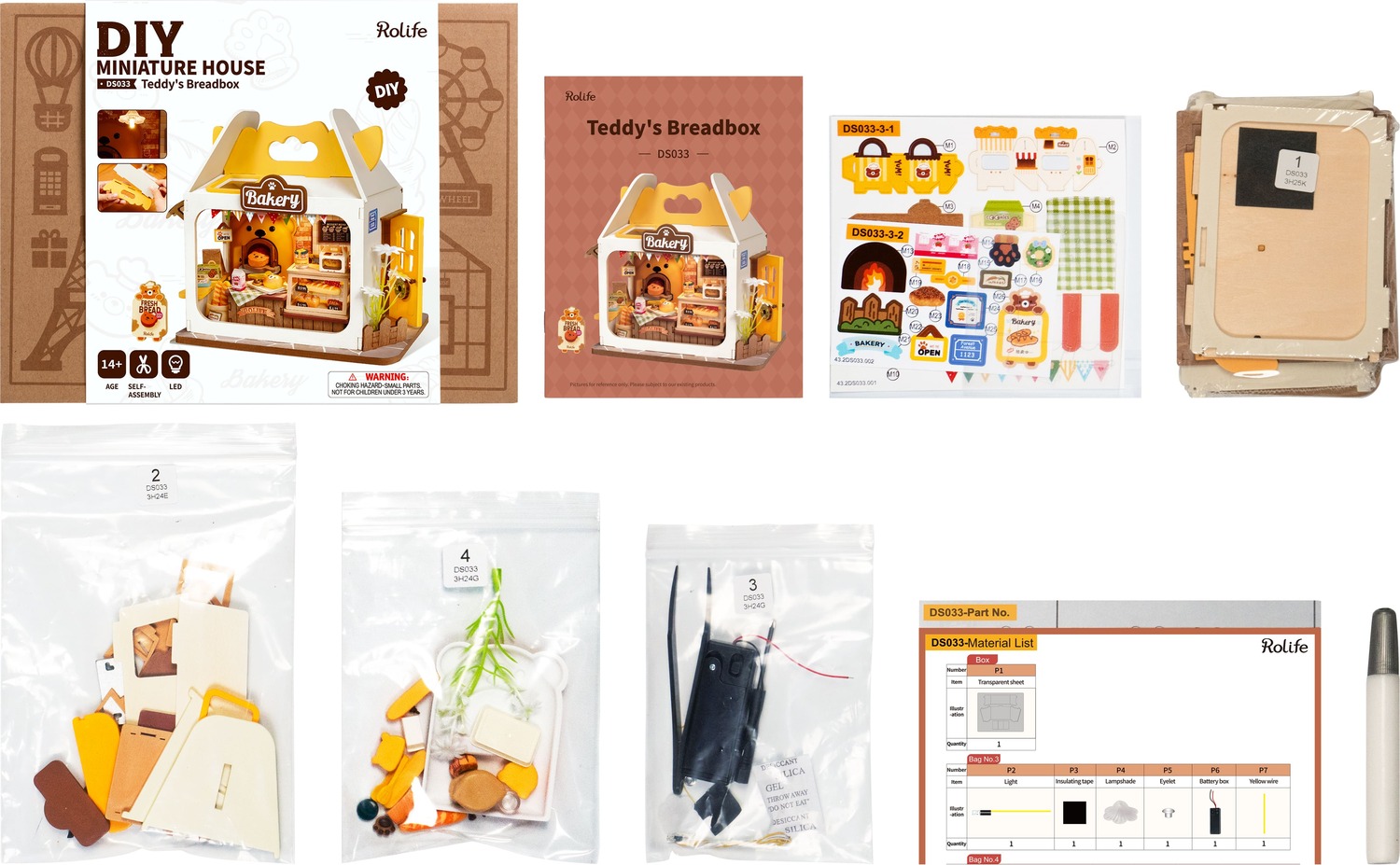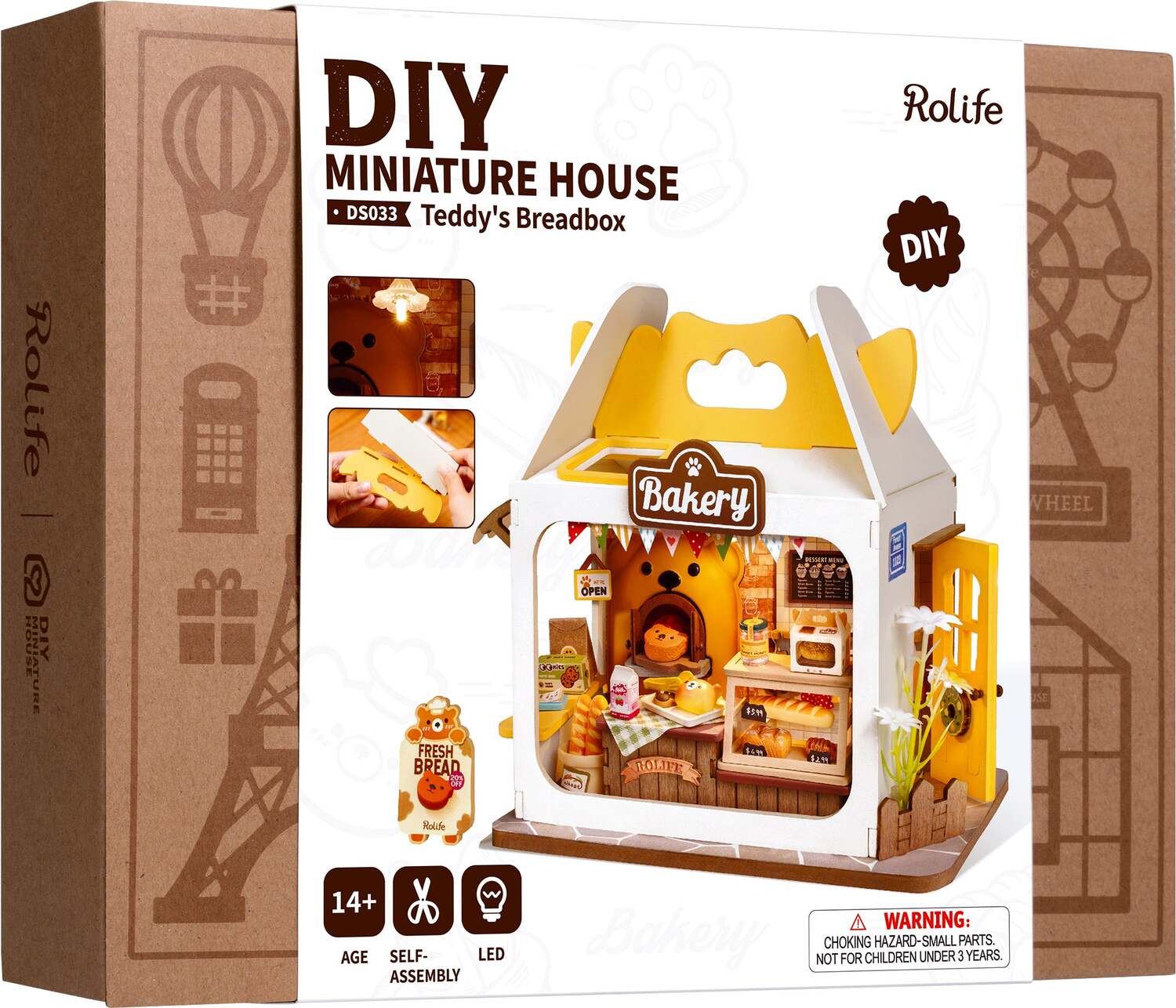 This delightful DIY miniature bakery creation features an array of bear-shaped bread, each piece carefully designed to capture the warmth and coziness of a neighborhood bakery. The bakery interior includes rustic wooden shelves, a bear-shaped firewood oven, and tiny jars of ingredients. The carry-out container serves as both the frame and a playful nod to take-out treats, making this miniature not only an enchanting craft but also a unique display piece.