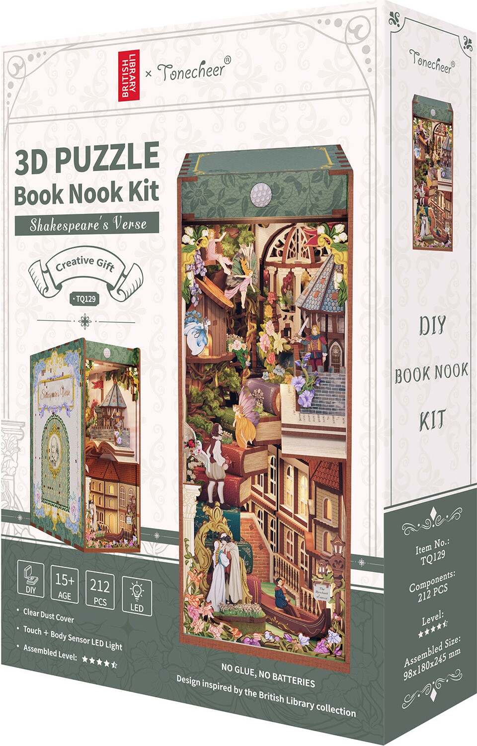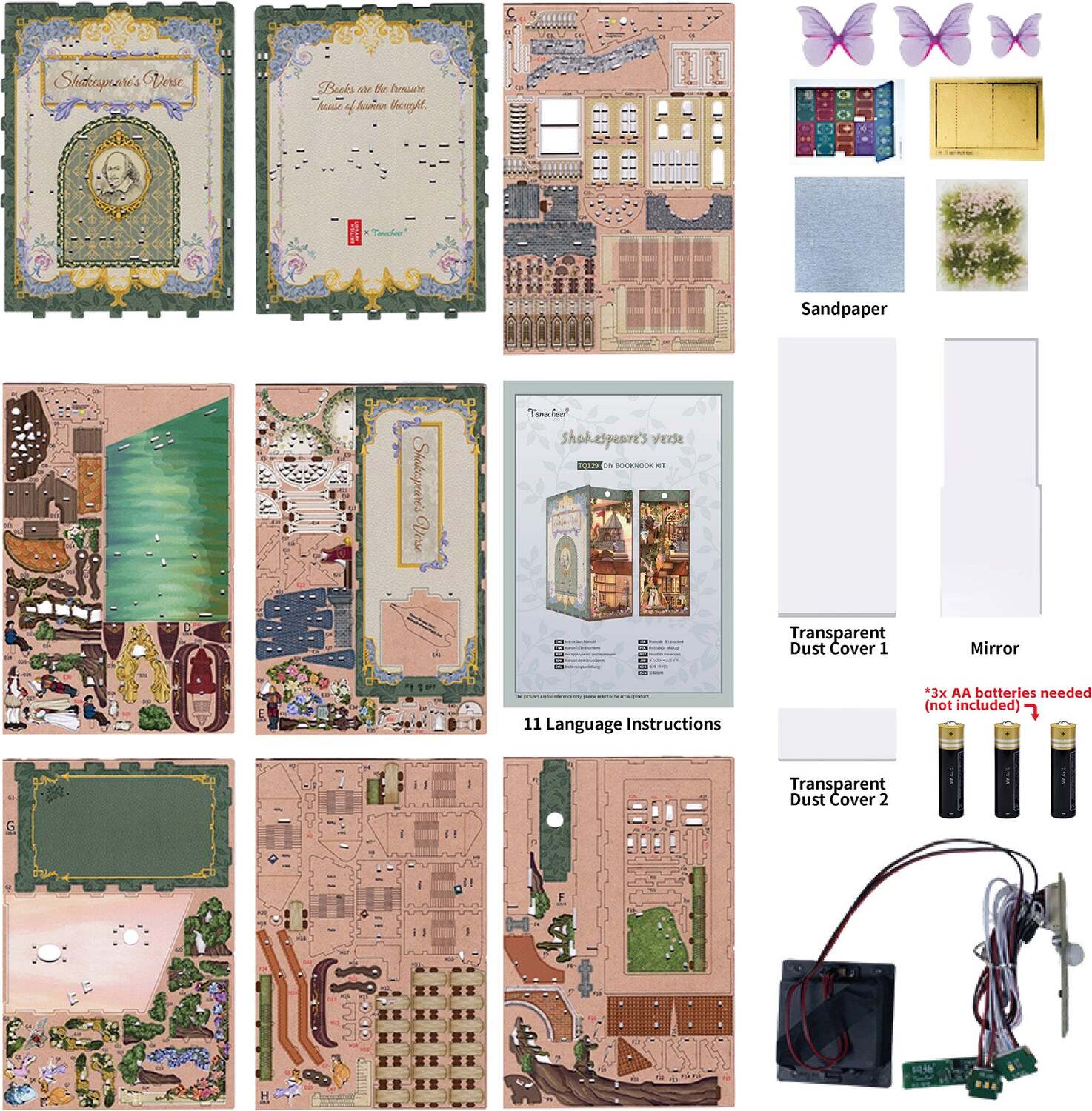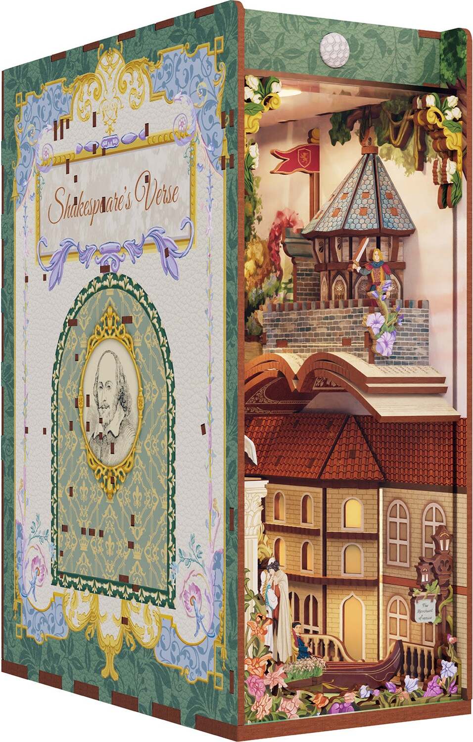 As you assemble the kit, you'll uncover a charming scene filled with hints of Shakespeare's masterpieces. From the iconic balcony of Romeo and Juliet to the mystical forest of A Midsummer Night's Dream, and even the regal halls of Macbeth and Hamlet, each piece captures the essence of his literary genius. The intricate details-like the flickering lights, old scrolls, and delicate architecture-invite you into a world where love, tragedy, and comedy all intertwine.