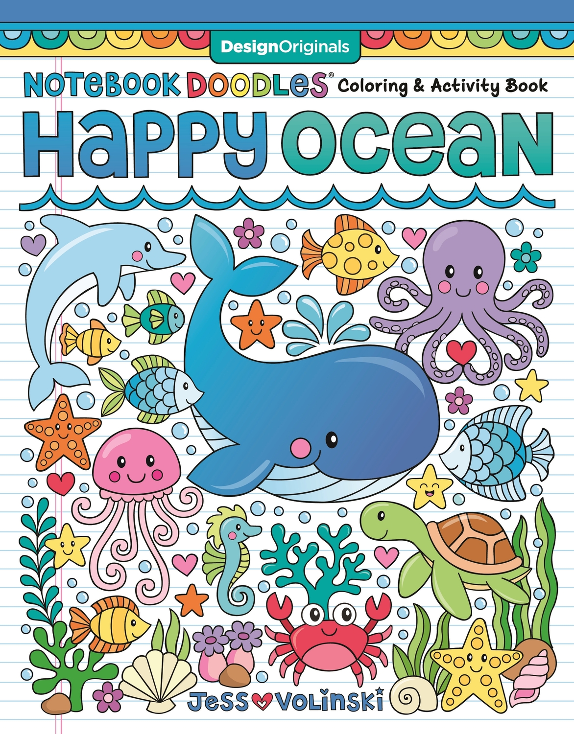 Dive deep into the sea with Notebook Doodles Happy Ocean! This adventurous and engaging coloring book for 'tweens is filled with 32 charming designs of whales, sea turtles, dolphins, starfish, and other amazing sea creatures from talented artist Jess Volinski.