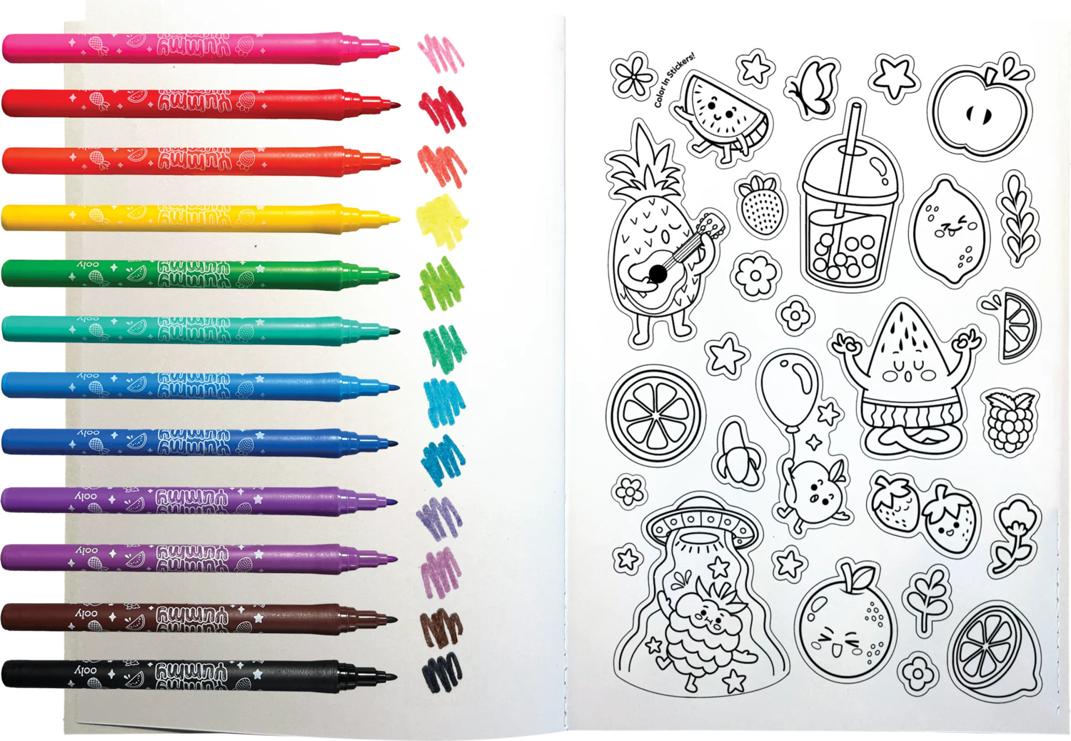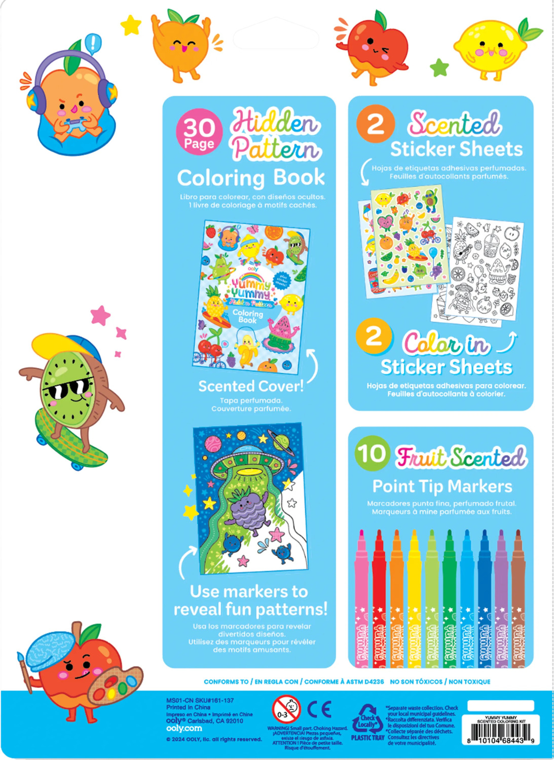 Why settle for ordinary when you can have extraordinary? The Yummy Yummy Scented Coloring Kit for kids is bursting with goodies to keep your little artist happy, entertained, and creatively inspired. Packed inside this all-in-one carrying kit are 10 fruit-scented markers, over 100 scented stickers, and a hidden pattern coloring book with 30 pages of surprises waiting to be uncovered. It's like a fruity fiesta in a box!