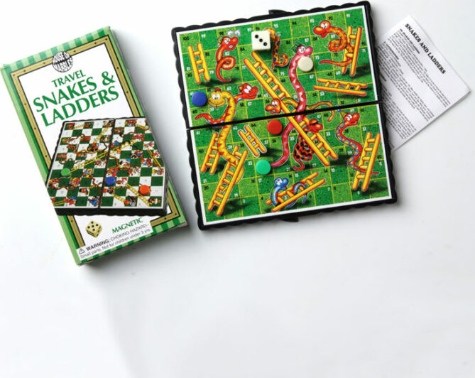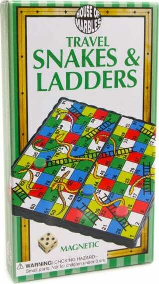 Brought to England from India by the Victorians, Snakes & Ladders is one of the most well-loved, traditional children's games and although simple is full of tension! A game of life's ups and downs. For 2 – 4 players in a handy magnetic travel pack.